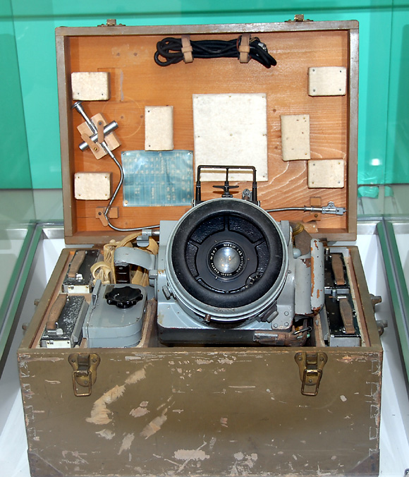 左の4枚の写真は日本光学製96式小航空写真機。所沢の航空発祥記念館に展示されているもの。