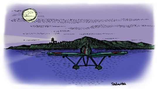 敵が警戒していることを案じて、藤田は小型水偵のエンジンを切ってふわふわとグライダーのように、音もなく海岸線にでた。再びエンジンをかけてランデブー地点に急ぐ。